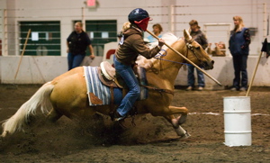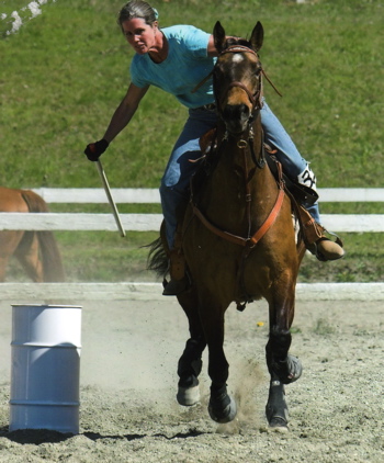 Our new hobby: No opinions involved, just you, your horse, and an electronic timer. Yee haw.